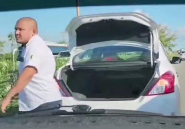 Inmediatamente, uno de los taxistas abre la cajuela de su auto y agarra, lo que al parecer es una navaja y le pincha las llantas a la unidad de Uber, pese a los reclamos de los turistas.