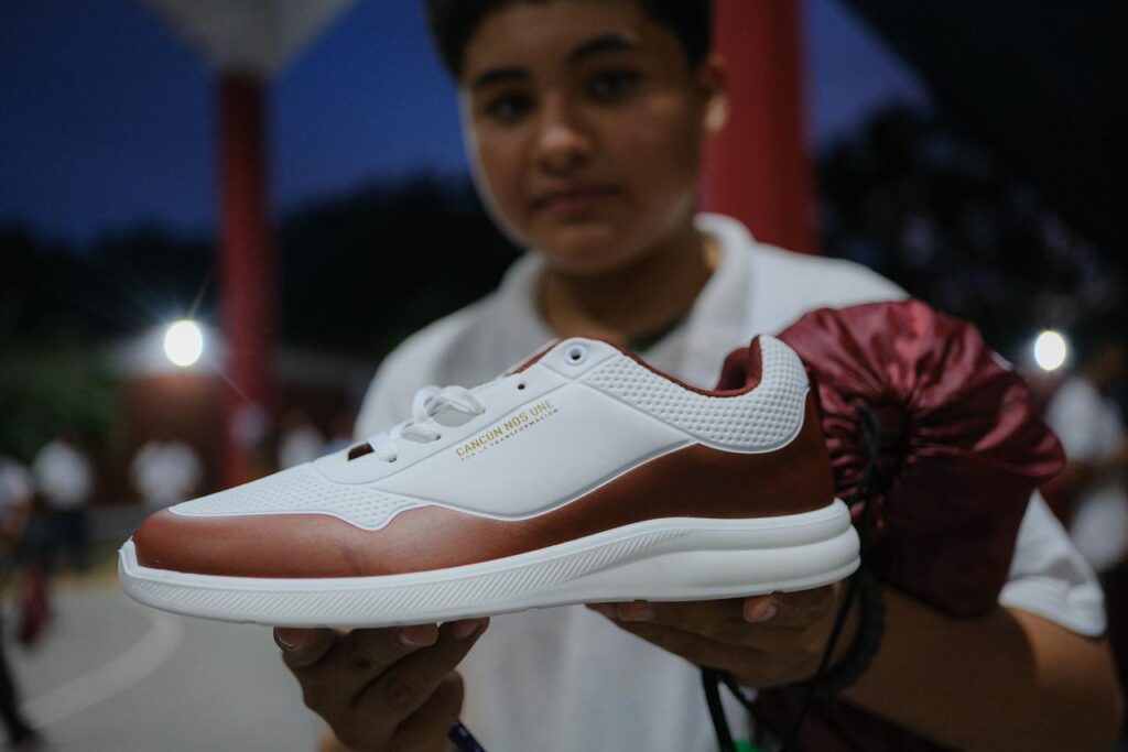 Afirmó que esta entrega de tenis se suma a lo que entrega la gobernadora Mara Lezama en Quintana Roo, como son los uniformes, mochilas y útiles escolares.