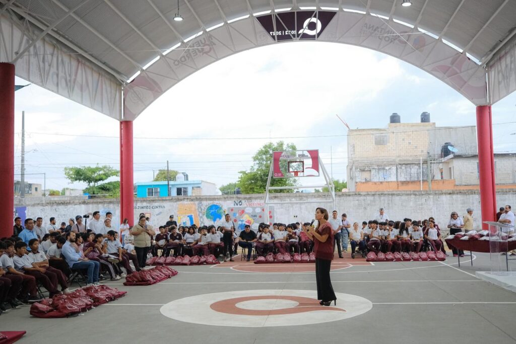 Cancún.- Con el apoyo del Ayuntamiento de Benito Juárez, la gobernadora Mara Lezama Espinosa puso en marcha el programa “Pasos para la Transformación” en la Secundaria Técnica 20 Rafael Ramírez Castañeda, una iniciativa estatal que busca beneficiar a estudiantes de nivel básico mediante la entrega gratuita de calzado deportivo.