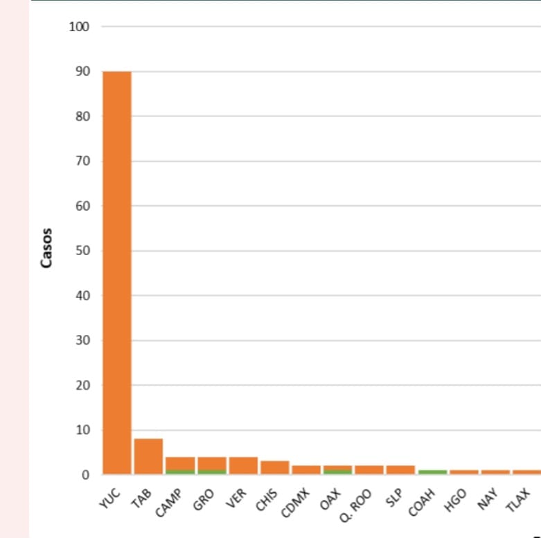 Campeche y Quintana Roo, registraron sus primeros casos en la semana epidemiológica 4, con cuatro y dos, respectivamente, hasta el momento no se reporta ninguna defunción y de acuerdo con el reporte semanal de la Secretaría de Salud Federal, se han detectado más de cinco mil infecciones respiratorias agudas en las unidades centinela.