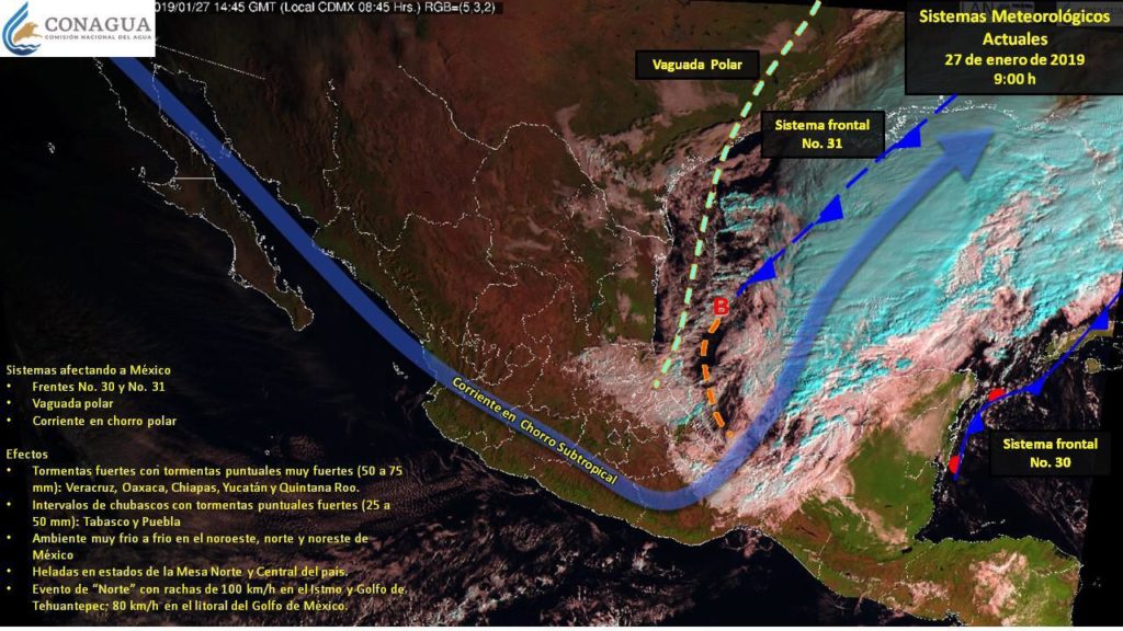 Debido a la entrada del frente frío número 31 al estado de Quintana Roo, las 11 direcciones municipales de Protección Civil activaron su protocolo tormenta por las fuertes rachas de viento y la lluvia que se originan, informó el director general de la Coordinación Estatal de Protección Civil (COEPROC), Adrián Martínez Ortega.