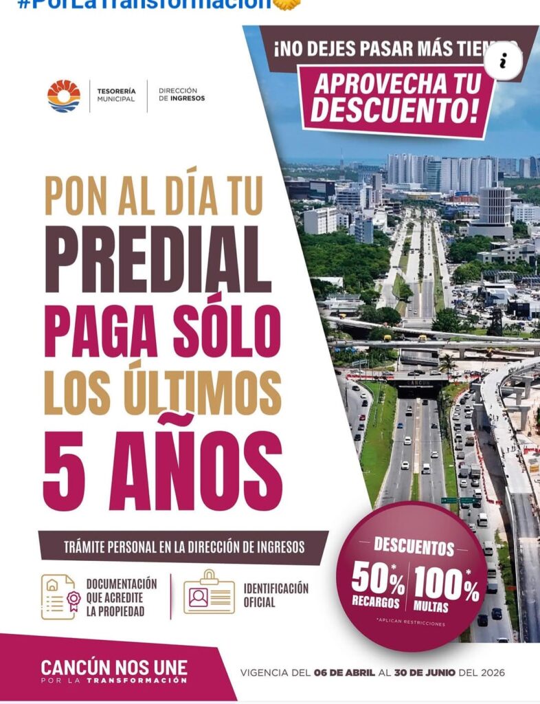 El ayuntamiento de Benito Juárez a través de la dirección de Ingresos puso en marcha el programa, «Pon al día tu predial paga sólo los últimos cinco años», que entró en vigencia el 6 del presente al 30 de junio