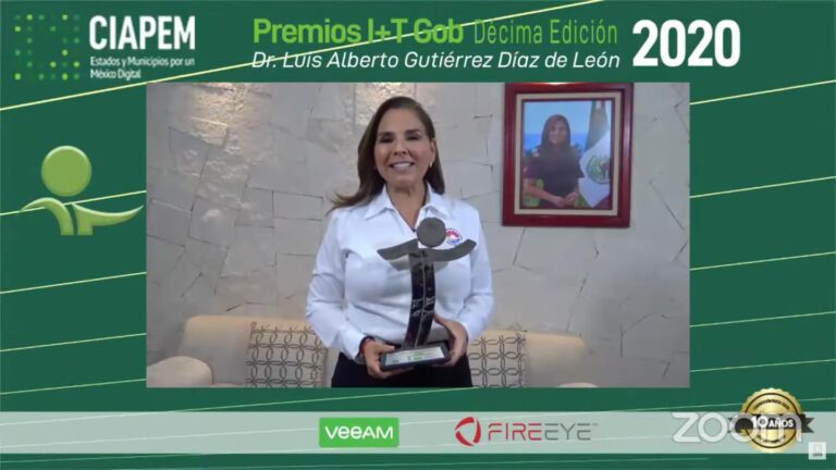 Durante la décima edición de los Premios I+T Gob 2020 que se llevó a cabo de manera virtual y que contó con la participación de diversas autoridades de diferentes entidades del país, Mara Lezama subrayó que al inicio de la gestión, se dio el arranque de la digitalización de los trámites y servicios, con el objetivo de hacer más ágil, transparente y eficaz, los procesos administrativos para combatir de frente la corrupción.