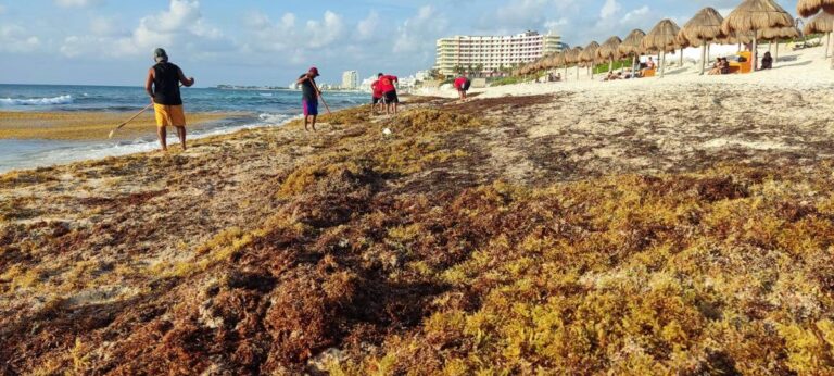 “Aproximadamente entre 3 y 8 kilómetros frente a la zona de playas, esta gran cantidad de sargazo arribará en las próximas horas para mañana se esperan velocidades de viento de hasta 30 kilómetros por hora con una dirección de 130 grados del sureste que favorecerá el arribo de este sargazo”, aseguró.