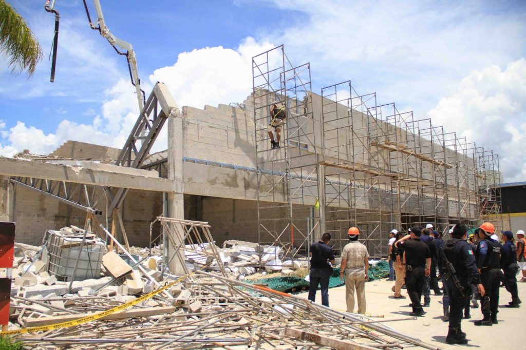 Dependencias del gobierno municipal de Puerto Morelos, como Protección Civil, Bomberos y Seguridad Pública, reaccionaron de manera inmediata luego del desplome en la construcción que se realizaba en la Plaza Súper Aki, ubicada sobre la carretera federal, a la entrada de esta comunidad, que dejó como saldo 14 personas lesionadas y un fallecido.