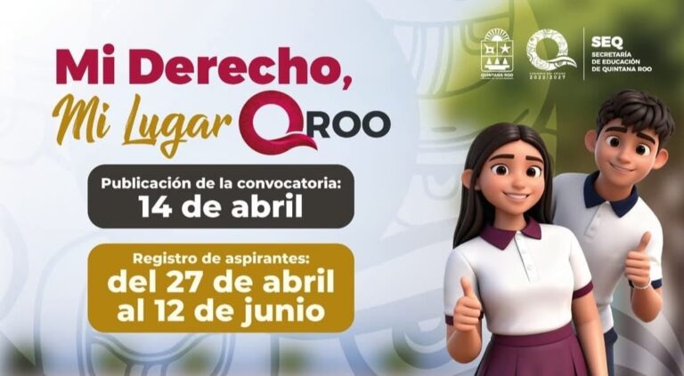 La dependencia educativa informó que, a través de la convocatoria mi Derecho, Mi lugar Quintana Roo, se darán a conocer las reglas de operación para la asignación de espacios, a través del cual se impulsa el nuevo modelo educativo de bachillerato nacional, al eliminar el examen de admisión, pues busca garantizar que todos los aspirantes obtengan un lugar este nivel de estudios.