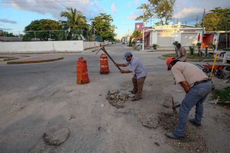 Como parte del programa de mantenimiento a las vialidades, la Dirección de Servicios Públicos Municipales trabaja con brigadas en el bacheo de las avenidas principales de Cancún para posteriormente atender las calles secundarias.