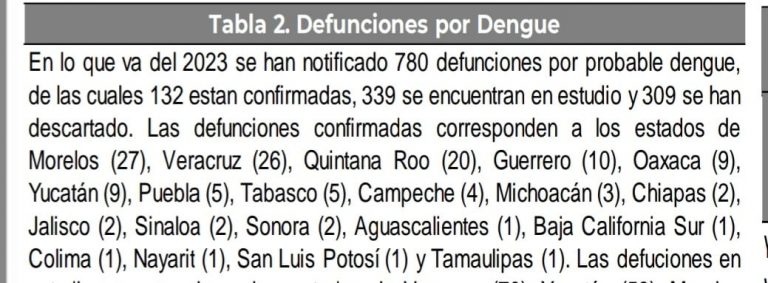 Los tres estados con mayor número de decesos por dengue son: Morelos con 27; Veracruz reporta 26 y Quintana Roo 20, en todo el país el total de muertes es de 132 hasta ahora y los casos de dengue siguen a la alza.