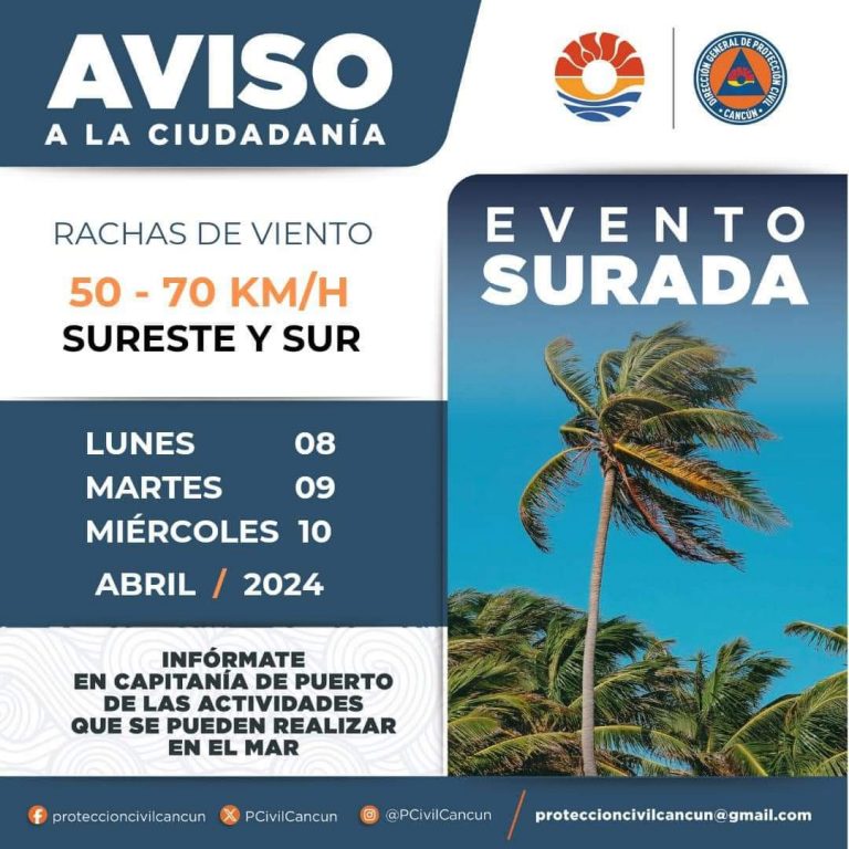 La Comisión Nacional del Agua y el Sistema Meteorológico Nacional dieron a conocer que, a partir de este lunes 8 y los días; martes 09 y miércoles 10 de abril, se registrará evento de «Surada», principalmente sobre las zonas de costa del estado.