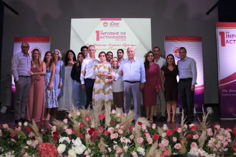 La presidenta honoraria del DIF Benito Juárez, Verónica Lezama Espinosa, rindió su primer informe de actividades 2021-2022, acompañada por su familia, autoridades estatales y municipales, así como la gobernadora electa, Mara Lezama Espinosa.