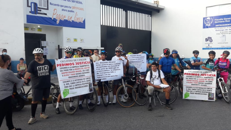 Un grupo de ciclistas de Cancún realizó una marcha desde la avenida Huayacán hasta las instalaciones de la Fiscalía General del estado, ubicadas sobre la avenida Xcaret, a fin de presionar a las autoridades para que retomen este caso ocurrido en 2020 en el cual falleció una persona y dos resultaron lesionadas.