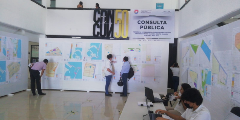 Este lunes 25 de julio a las 10 de la mañana comenzó la consulta pública del “Programa de Desarrollo Urbano del Centro de Población de Cancún, Benito Juárez, Quintana Roo 2022” en el patio del central del palacio municipal.